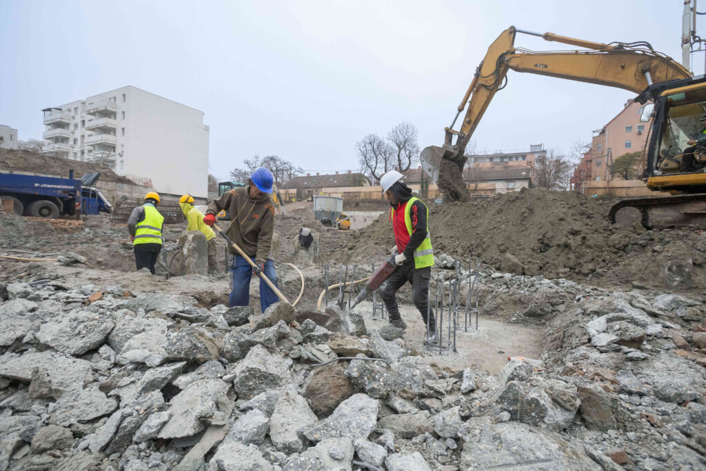 A kivitelezés fontos mérföldkőhöz érkezett: a cölöpözési munkák a hét folyamán befejeződtek. Ezzel párhuzamosan megkezdődött a Reitter Ferenc utca felé eső területen a cölöpfejek visszavésése, vasalása és betonozása.