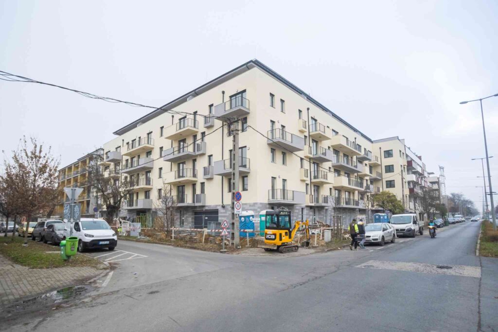 A belső udvarban jelenleg kertépítészeti munkák zajlanak, amelyek a közösségi terek végső kialakítását szolgálják.